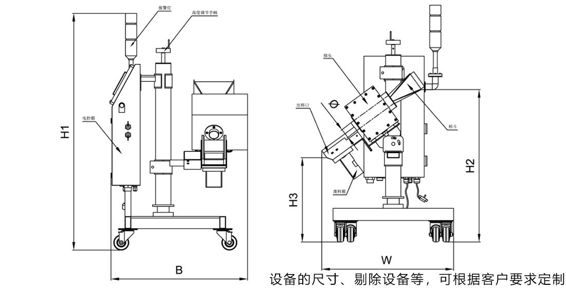 9 | 聯機排除金屬雜質,保證生產線正常運轉 可手動升降機架高度和微調傾斜角度 易于移動和清洗. |